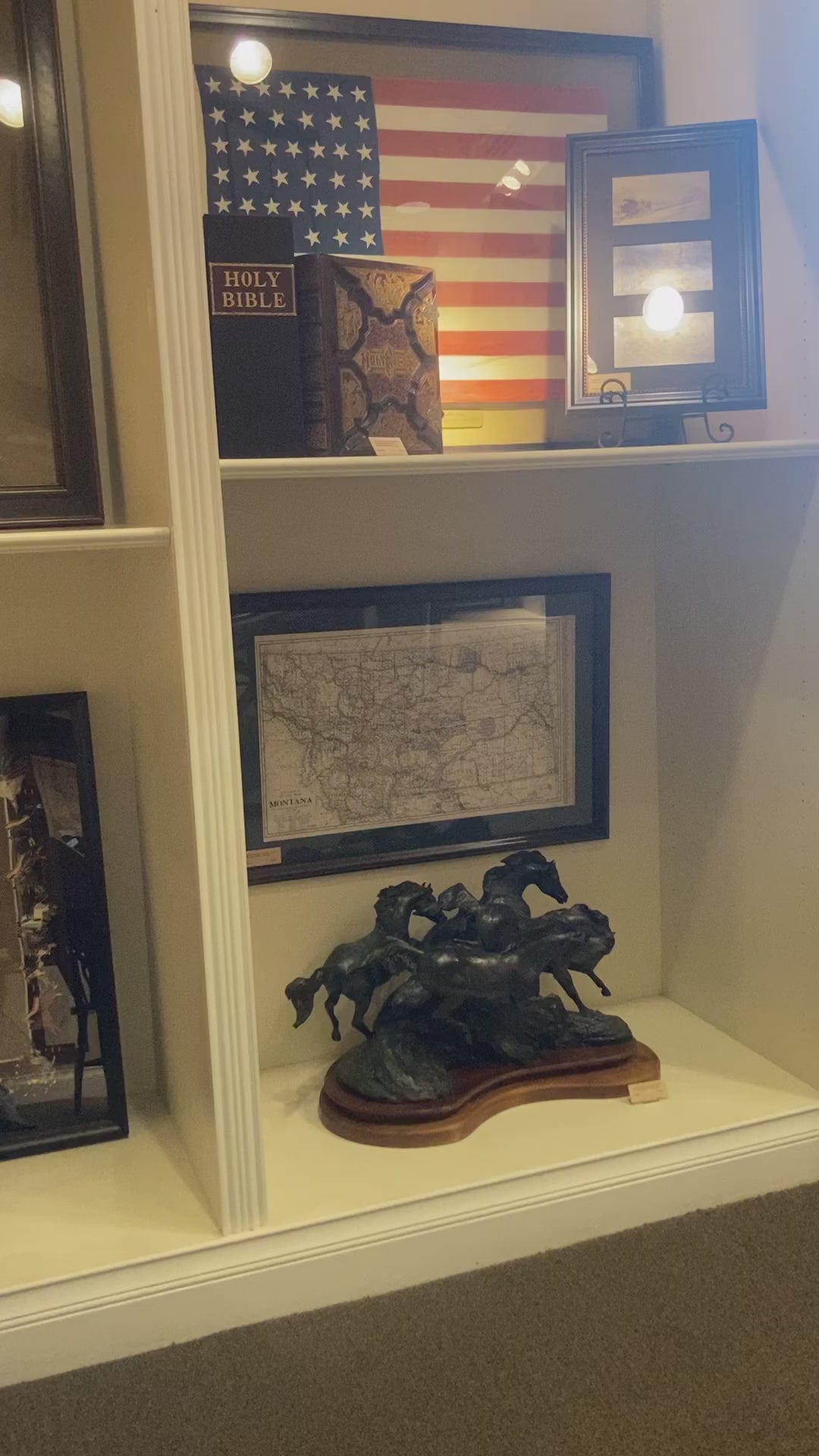 Goodnight has monumental sculptures across the United States, in Europe, and Japan. The most notable is “The Day The Wall Came Down,” a 14,000 pound bronze sculpture consisting of five larger than life size horses jumping over the fallen Berlin Wall. The United States Air Force flew this monument to Berlin, Germany in 1998 on the 50th anniversary of the Berlin Airlift. It is now installed at the Allied Museum, with a sister casting at the George H. W. Bush Presidential Library in Texas. In November 2019, a maquette of this sculpture was unveiled at the U. S. Air Force Academy, with installed sister maquette castings at the Central Intelligence Agency and the Ronald Reagan Presidential Library.